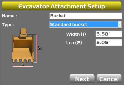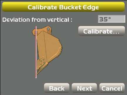Placez le godet à l'aplomb puis cliquez sur Calibrate Bucket.