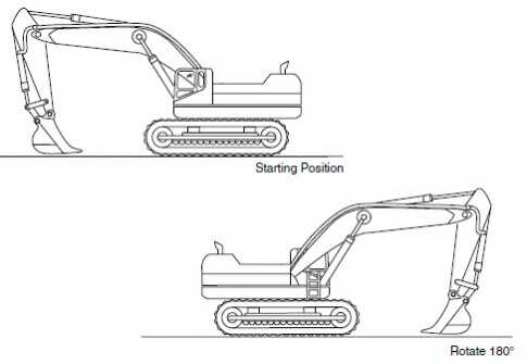 Le roulis du corps doit être égal à zéro degré lors de l'étalonnage de la flèche, du balancier et du godet.