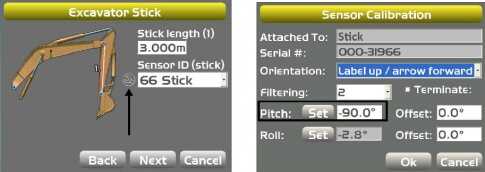 Étalonnage du capteur de l'excavatrice 2D/3D