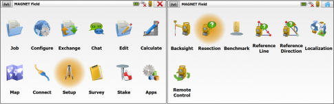 Connectez-vous à l'instrument. Dans MAGNET Field, sélectionnez SET UP > Resection (Configuration > Relèvement).