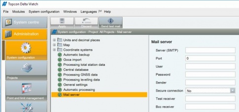 Si vous utilisez DW pour envoyer des rapports, des alarmes ou des avertissements de tout type par e-mail, les paramètres du serveur de messagerie doivent être à nouveau saisis. Le moment est parfois idéal pour modifier le compte de messagerie si vous souhaitez utiliser une méthode de connexion plus sécurisée. Les paramètres se trouvent dans « ADMINISTRATION > SYSTEM CONFIGURATION > MAIL SERVER ».