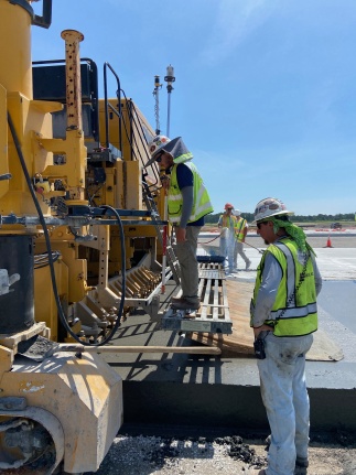 “Doing that helps ensure the concrete “head” in front of the paver is also uniform, which enhances both production and smoothness,” said Murchison. “The work bridge provides the final touch in the paving operation, creating a burlap drag finish on the apron’s surface.”